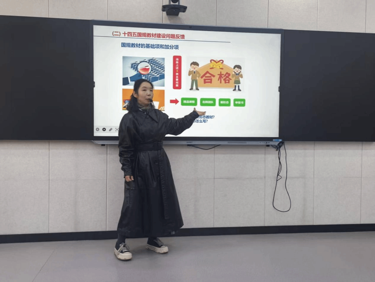 本次培训特邀获批第二批国家规划教材的师范学院窦敏娜教授、信息工程学院教学办主任魏迎副教授担任主讲嘉宾。窦敏娜教授围绕新形态教材(数字、活页式、工作手册式)的编写要点、注意事项,结合国家级课程建设经验,从内容架构、形式创新、质量把控等维度展开细致讲解;魏迎副教授则聚焦省级、国家级规划教材的申报流程、材料筹备、评审标准等核心内容,分享了申报实务中的技巧与常见问题规避方法。